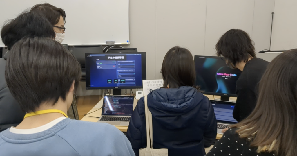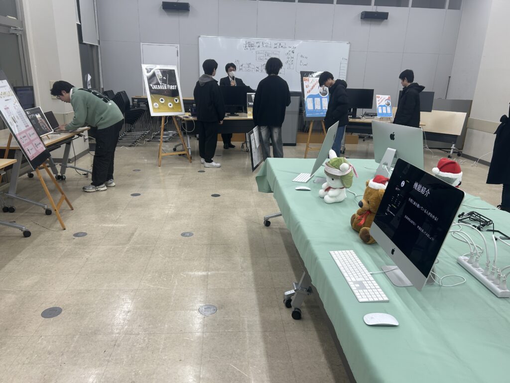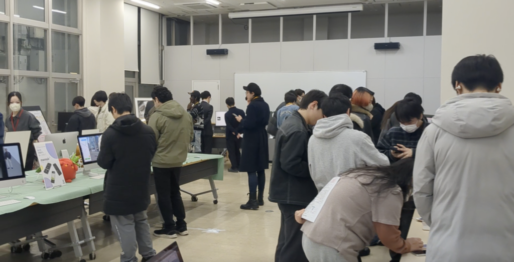 会場には1年生の姿も多く見られ、先輩たちが作ったアプリで使われていいる技術や考え方を積極的に質問する姿も見受けられました。彼らが主役となる来年の卒業制作展も楽しみです!