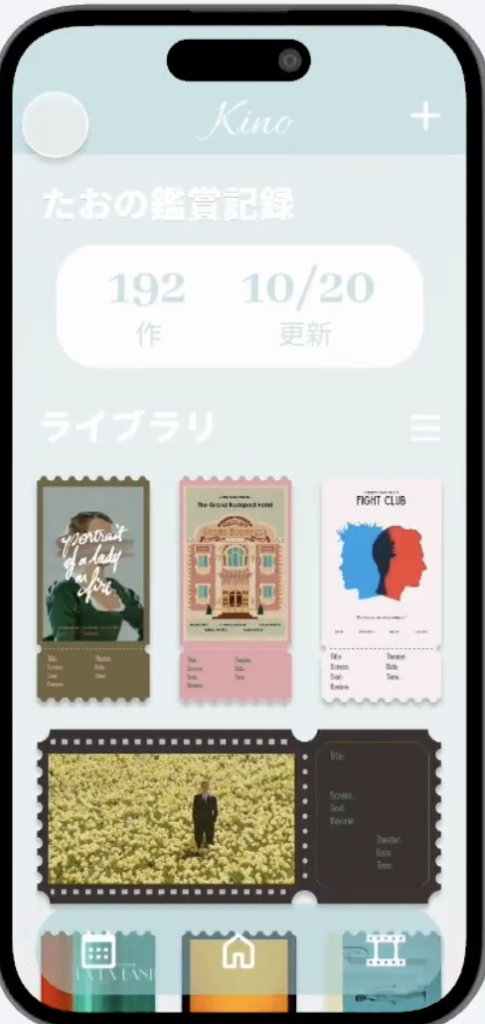 まずは、映画鑑賞の体験を手軽に記録できる「KINO」です!