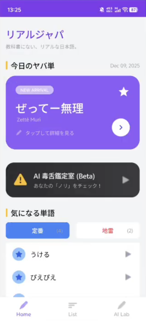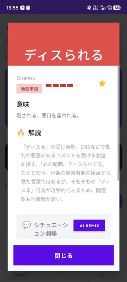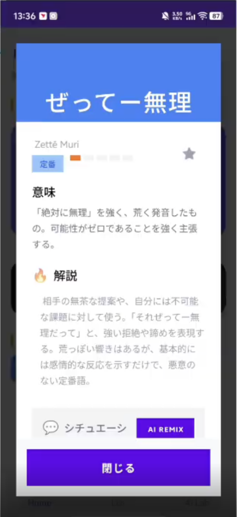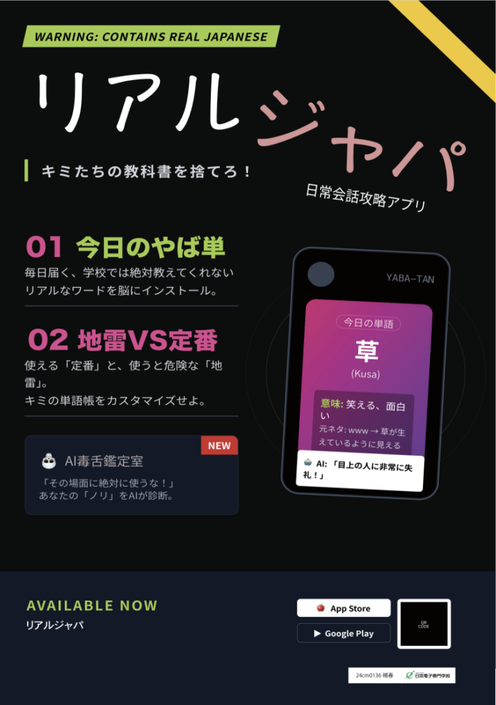 本来の意味とは違う使われ方をしたり、いみが変わっていたり、目上の人に使うと大変な「ヤバい」単語、その名も「ヤバ単」を数多く紹介してくれる留学生向けアプリ。